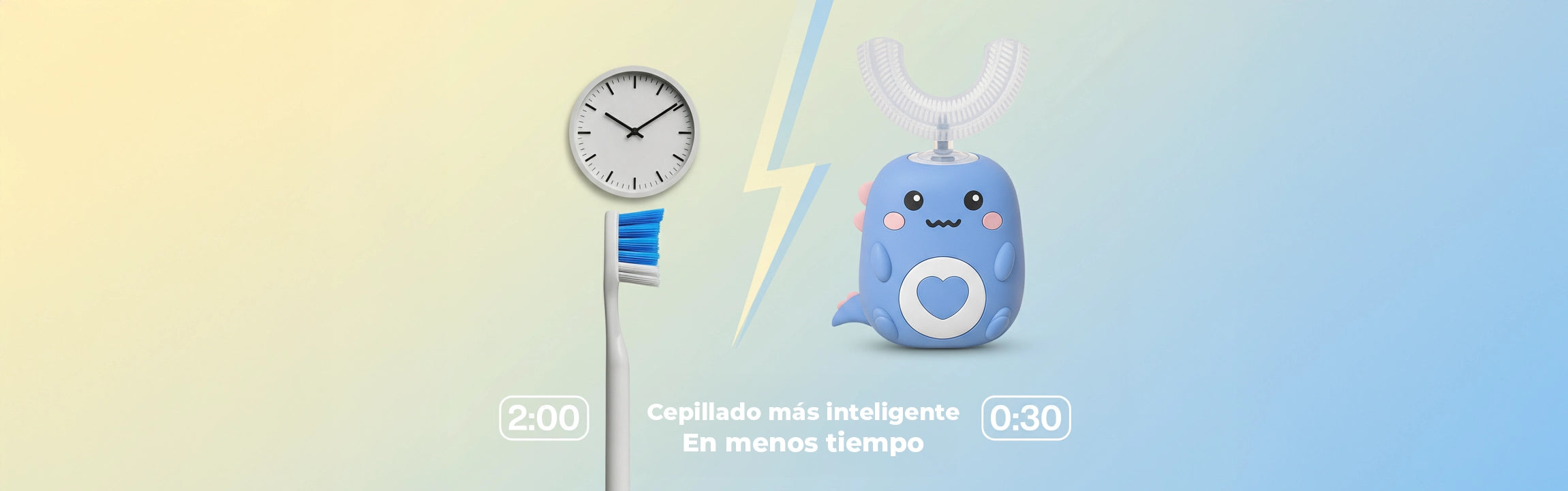 Nuestro cepillo infantil en forma de U convierte el cepillado en un juego divertido, rápido, suave y sin estrés.